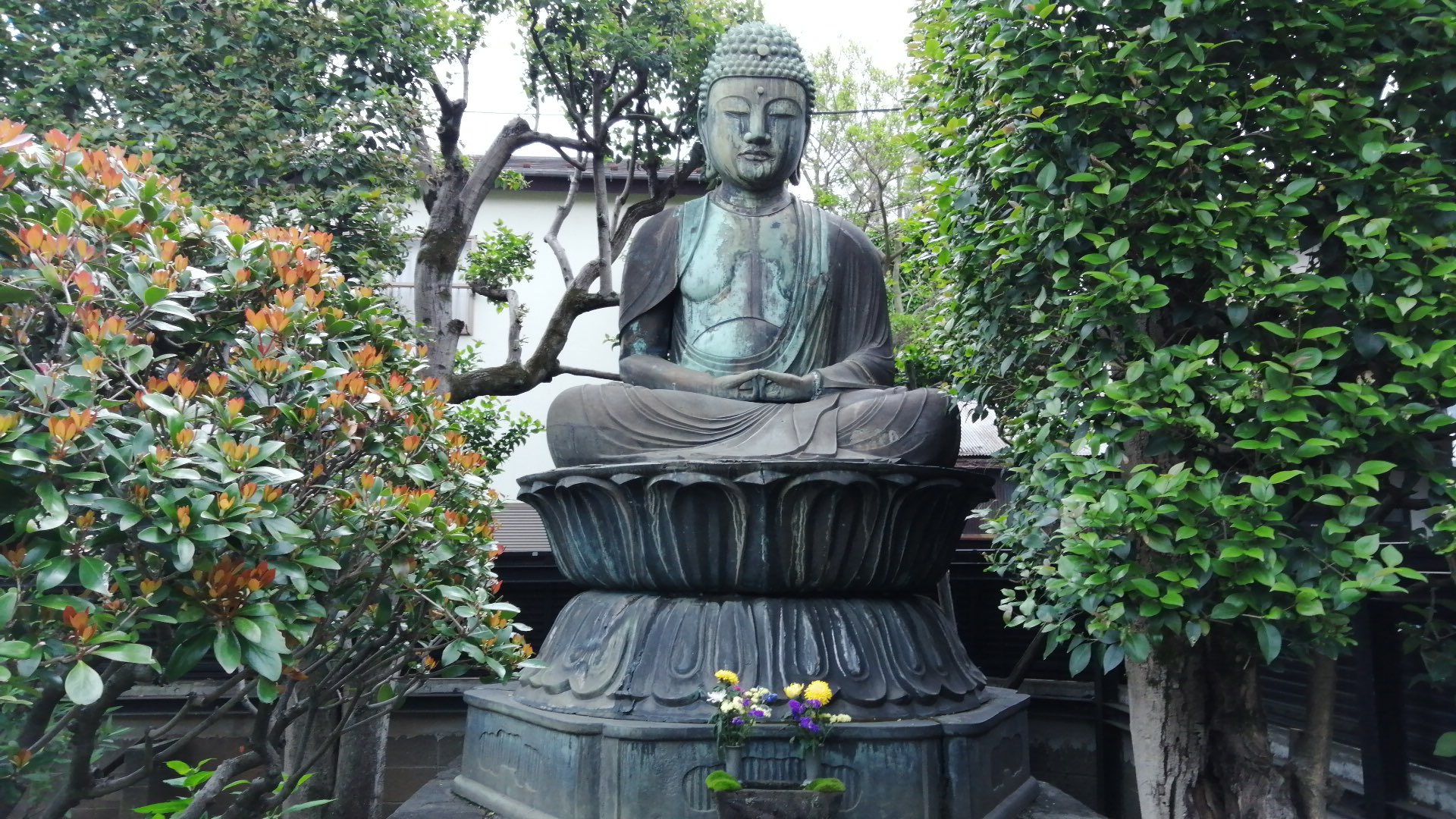 お寺さんの建物どこなんでしょう。仕方ないのでお地蔵さんをパチリ
