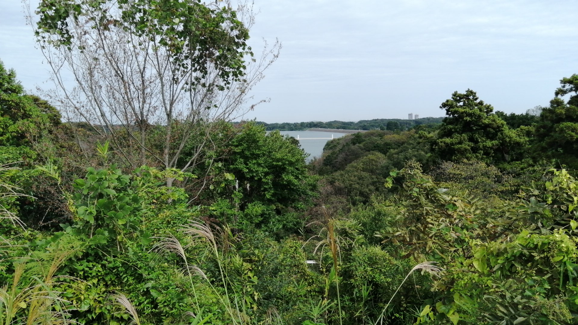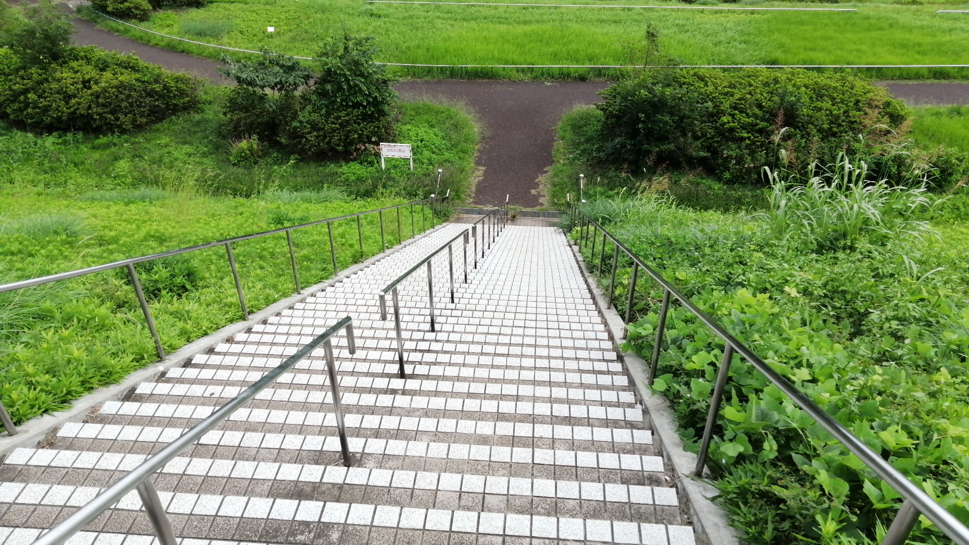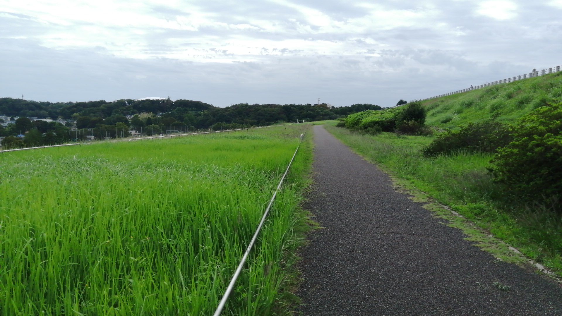 遠くを川が流れ、近くはスポーツグラウンド、ずっと先に橋