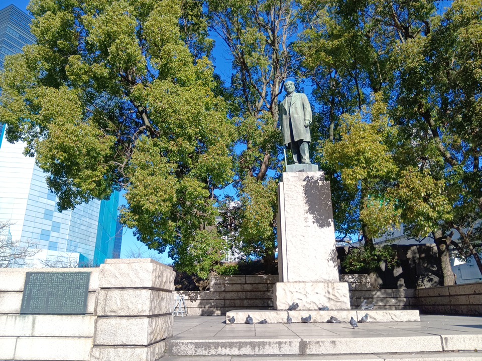 その横に、渋沢栄一の銅像