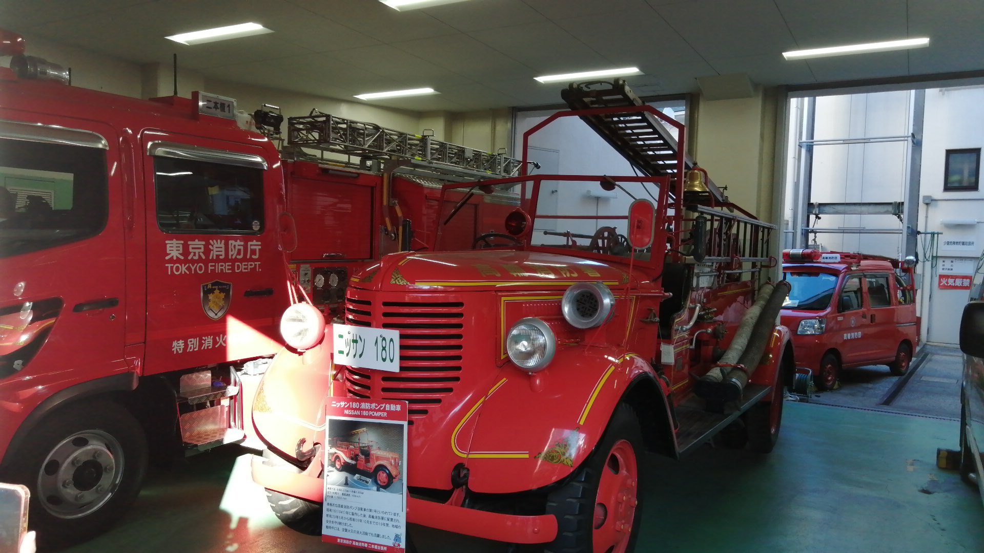 ここの特徴は古い消防車と最新の消防車が同時に見れる事なんです。