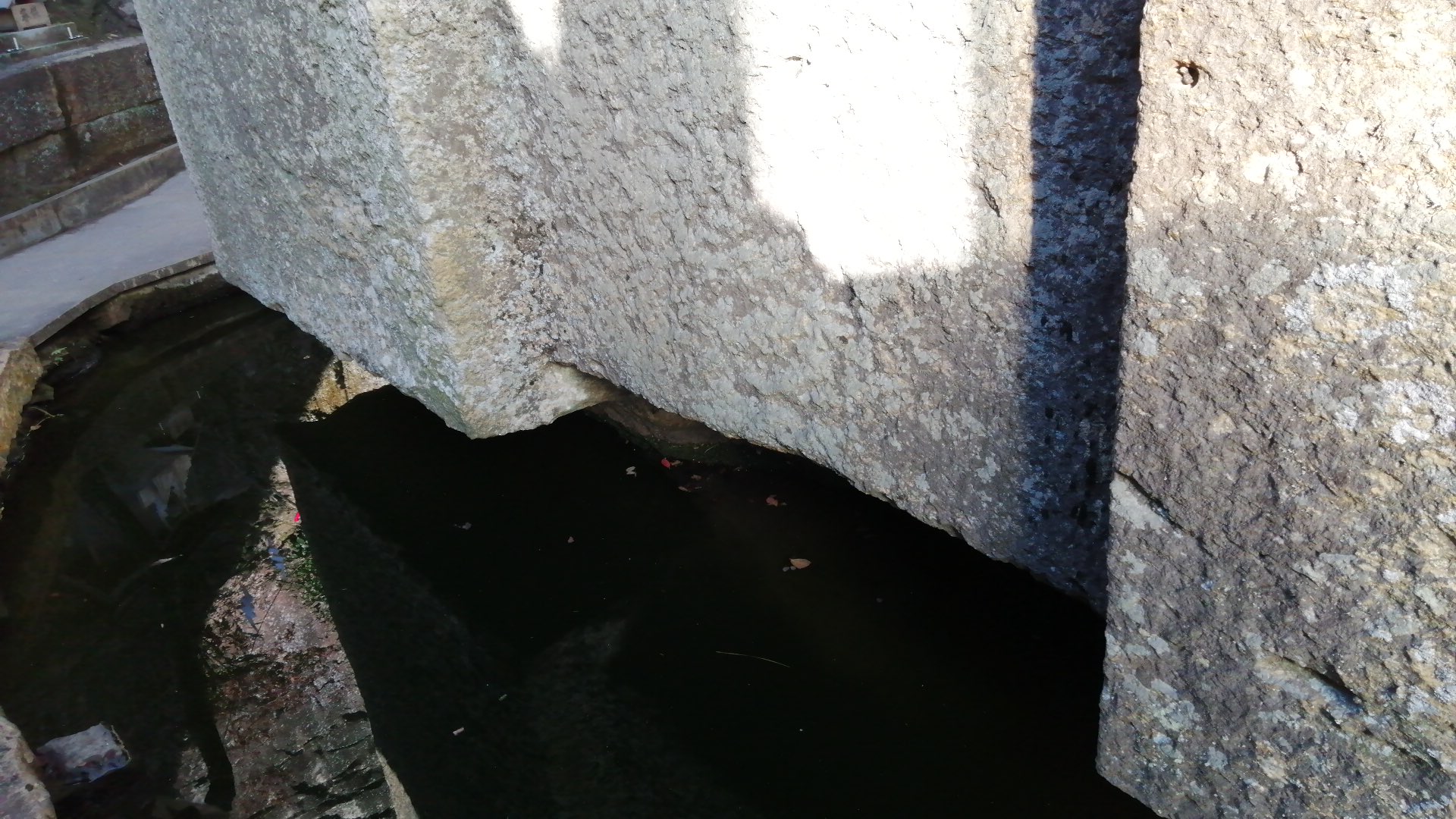 下に水がたまっているので、この巨石が浮いているように見えます。