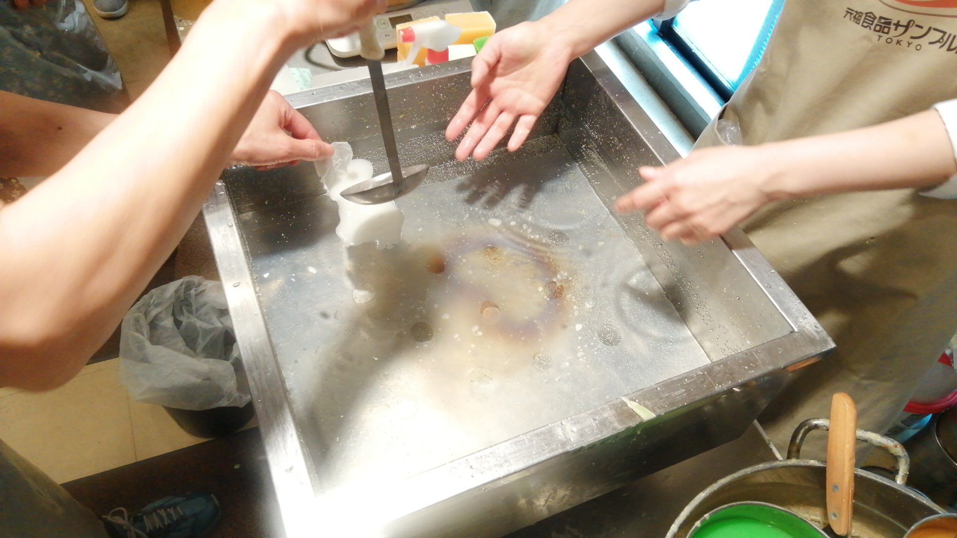お玉を使って、横にすーっと