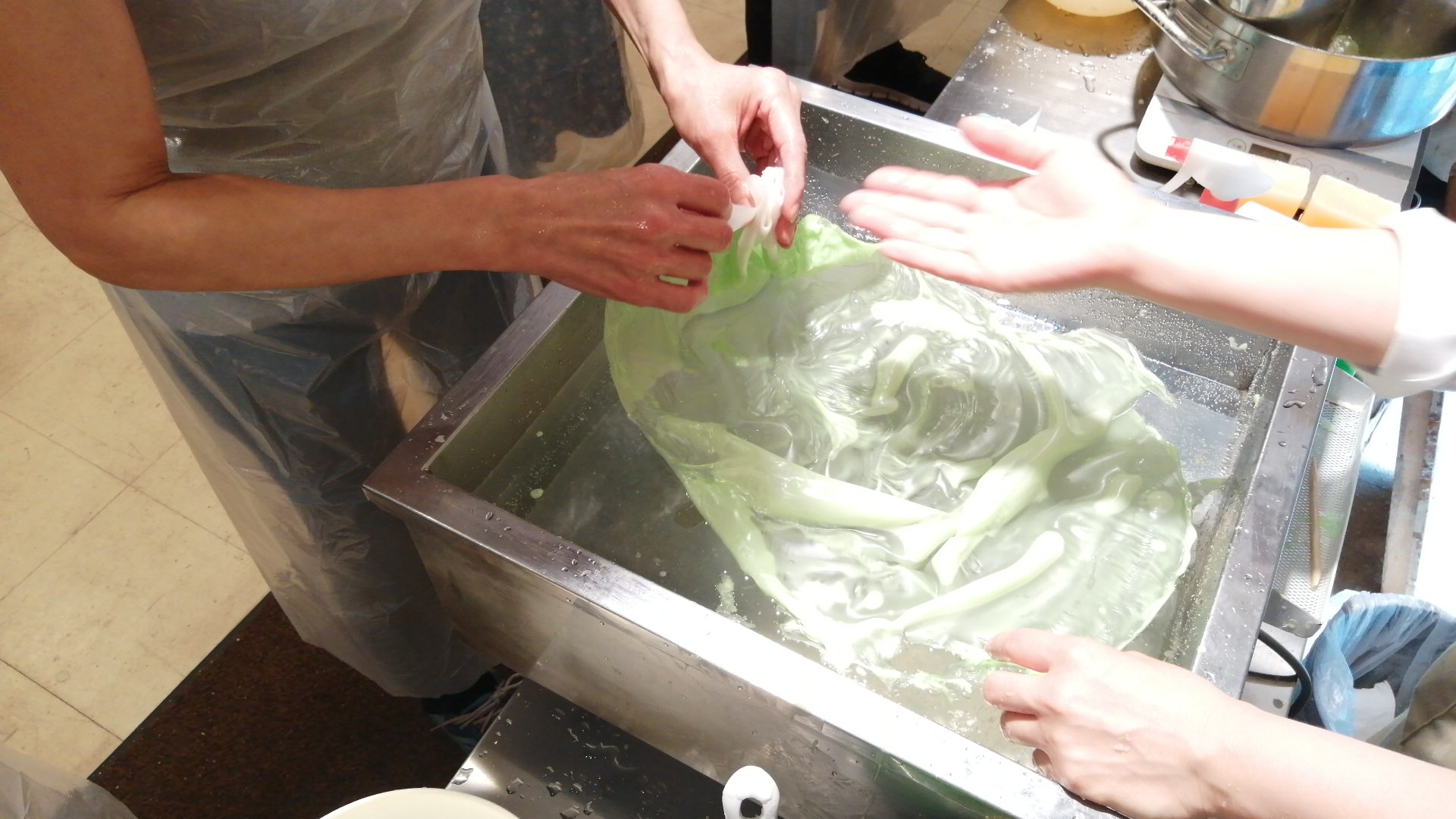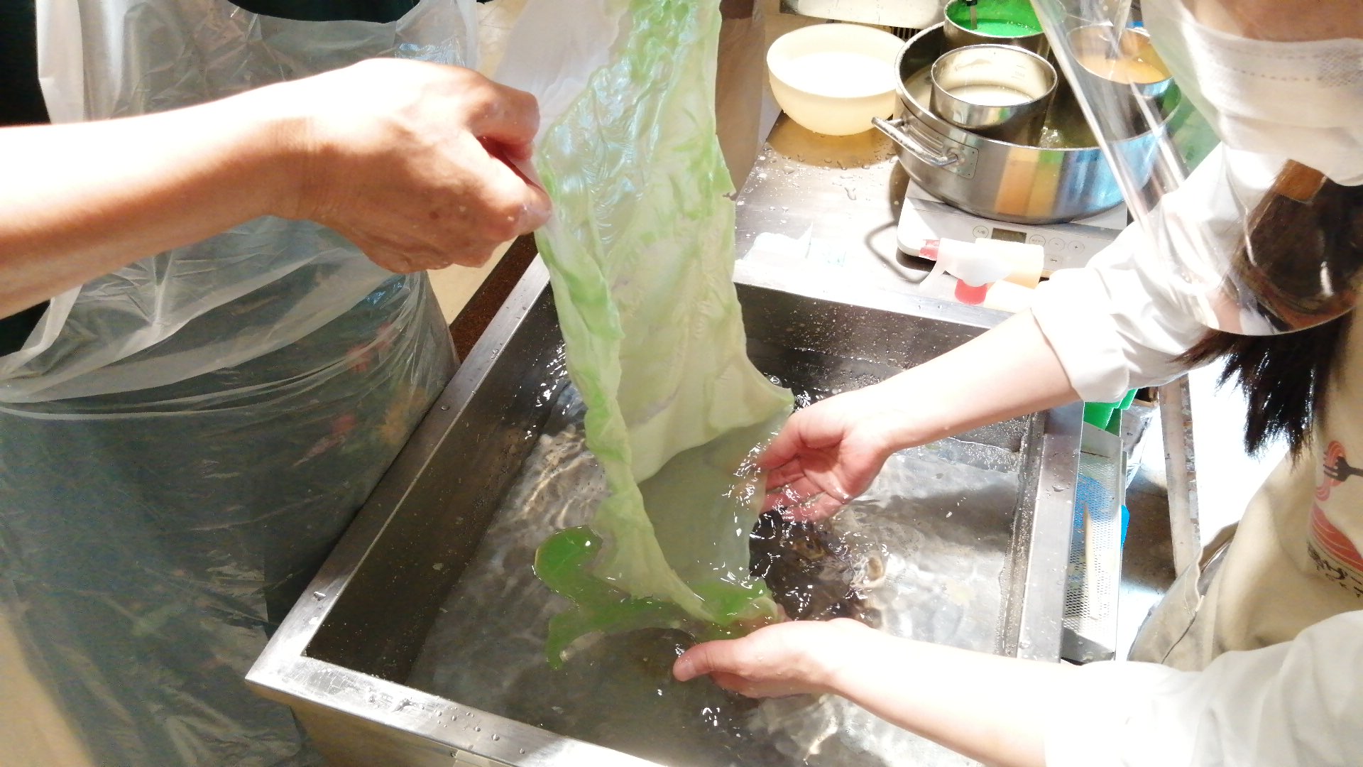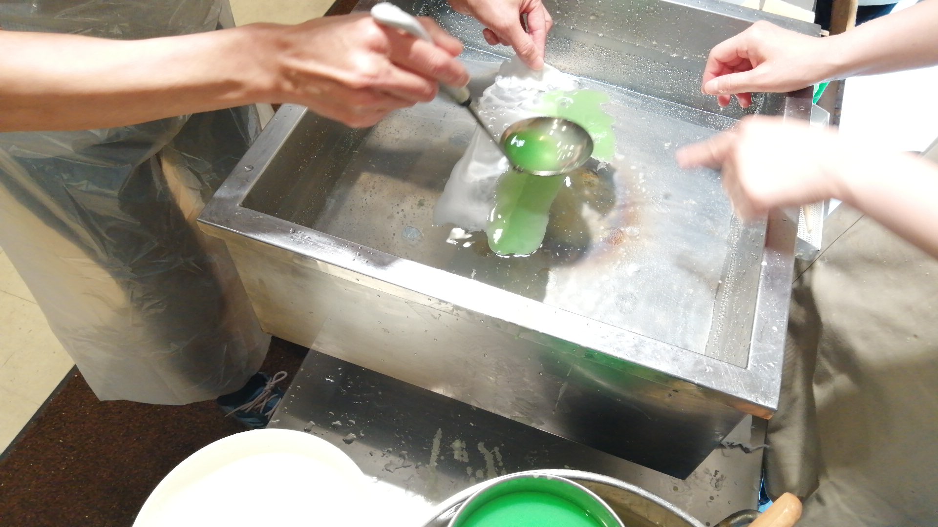 緑のろうを先生がさらに足してくれて