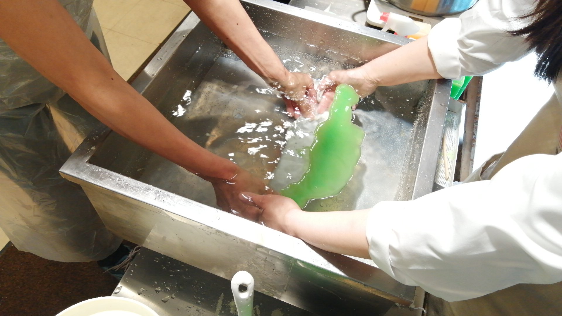 白いところを持ってお湯の中に沈め