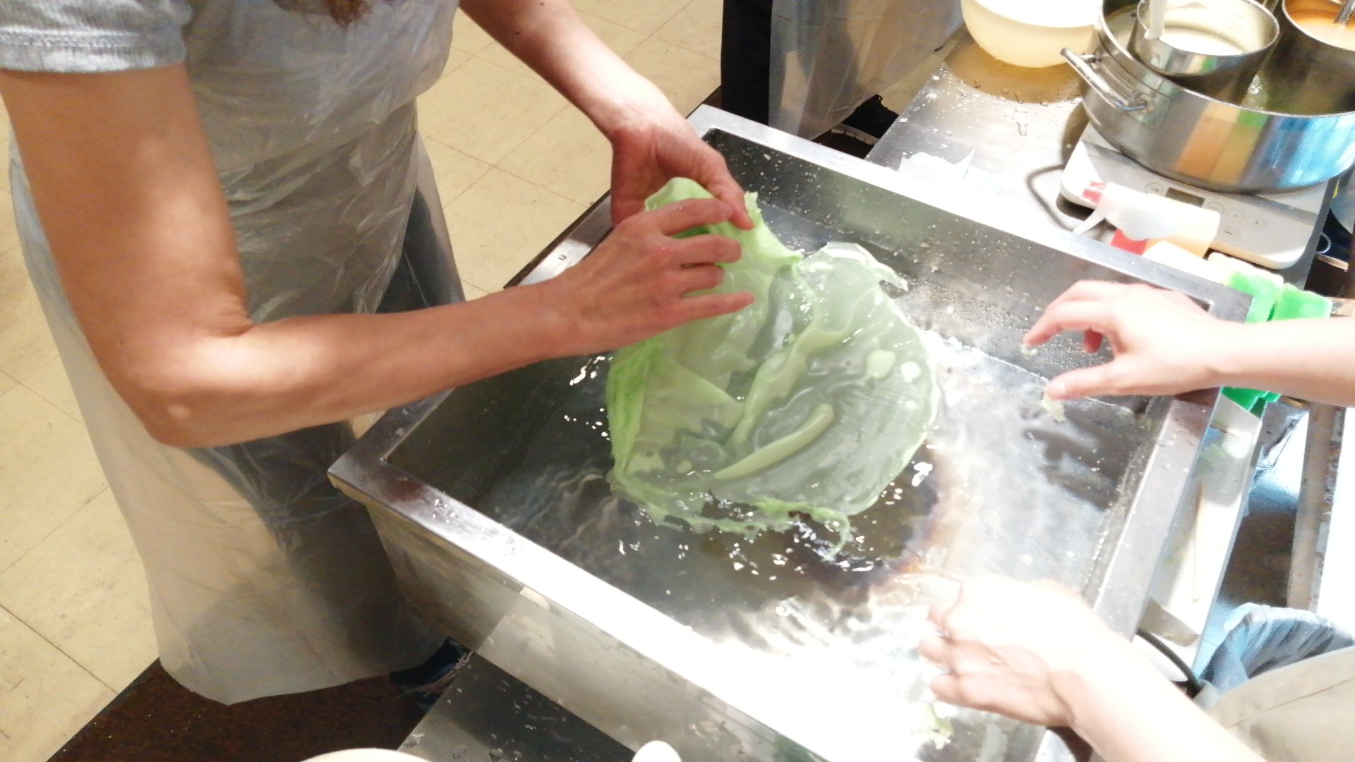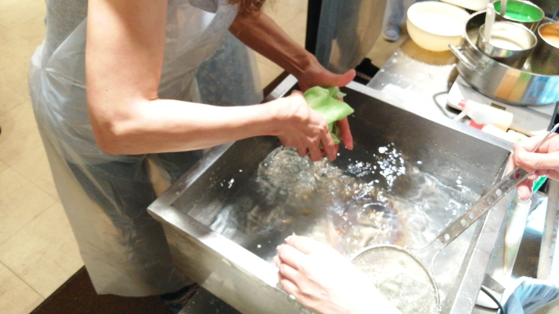 エビを真ん中に置いて、沈め、180度ひっくり返す