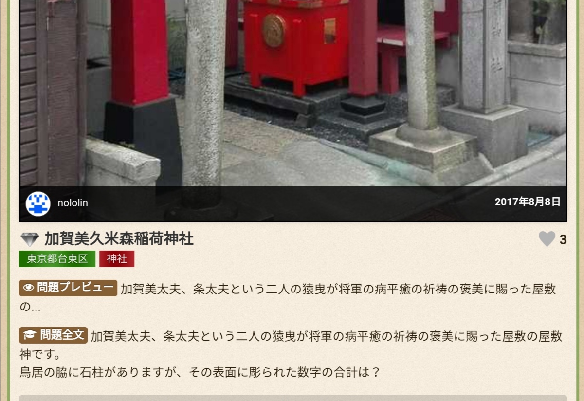 加賀美久米森稲荷神社であればこんな問題