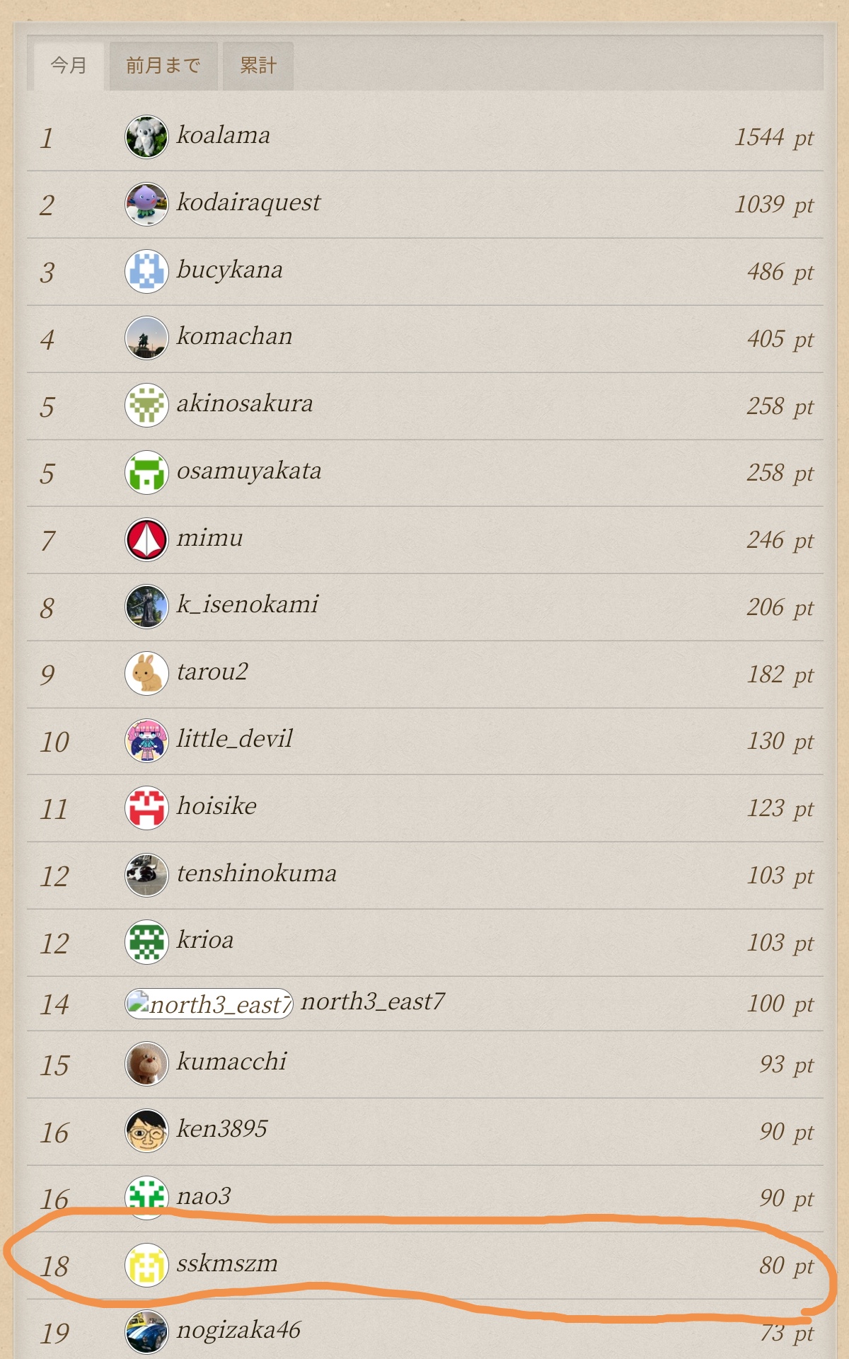この日1日かなりいっぱいポイントを重ねていきましたので、月間ランキング18位まで行きました。
