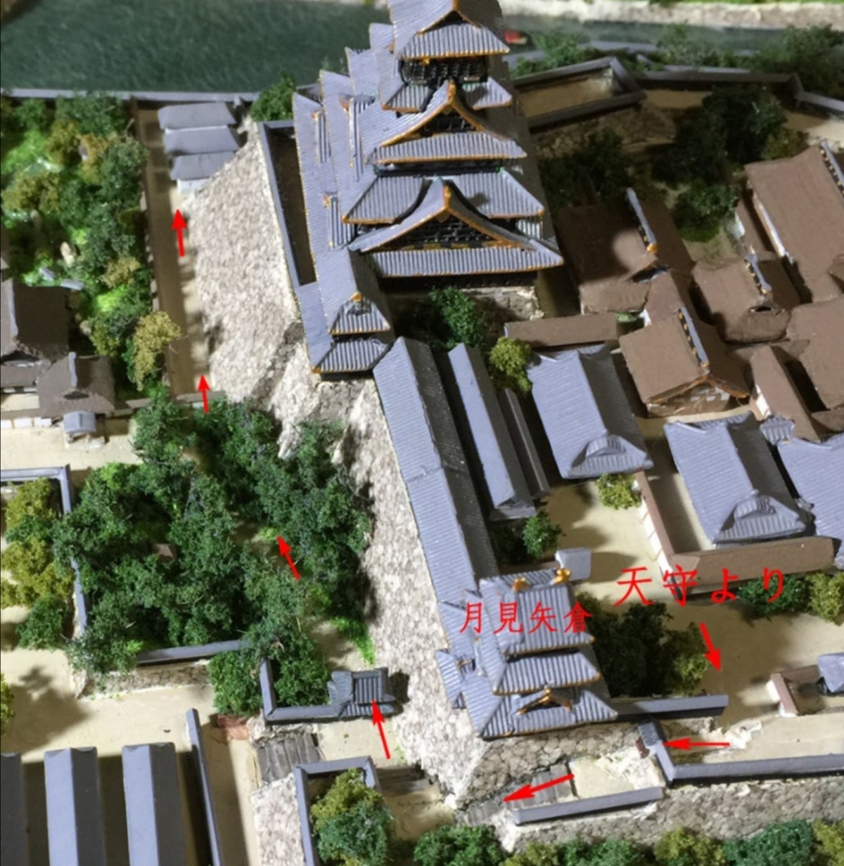 天守を下り、月見矢倉の下から芦田曲輪(山里曲輪)の朱三矢倉へつぼんだと『夏御陣覚書』にあるそうです。