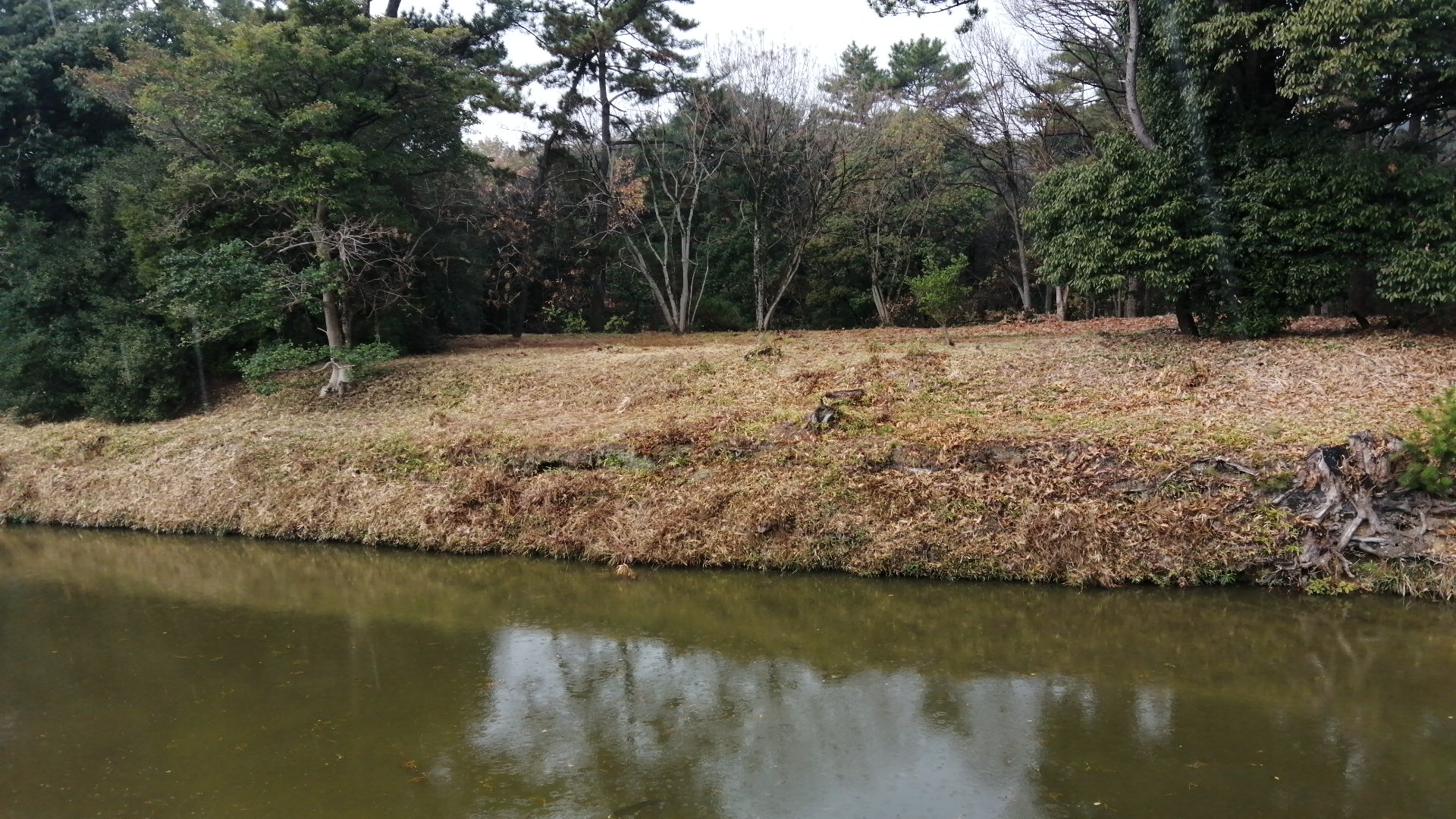 上から見るとお堀の中にも倍塚