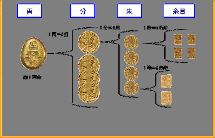 1番価値が高い一両金を筆頭に、その1/4の価値である一分金、さらにその1/4の価値である一朱金……と分けられていたのですが、