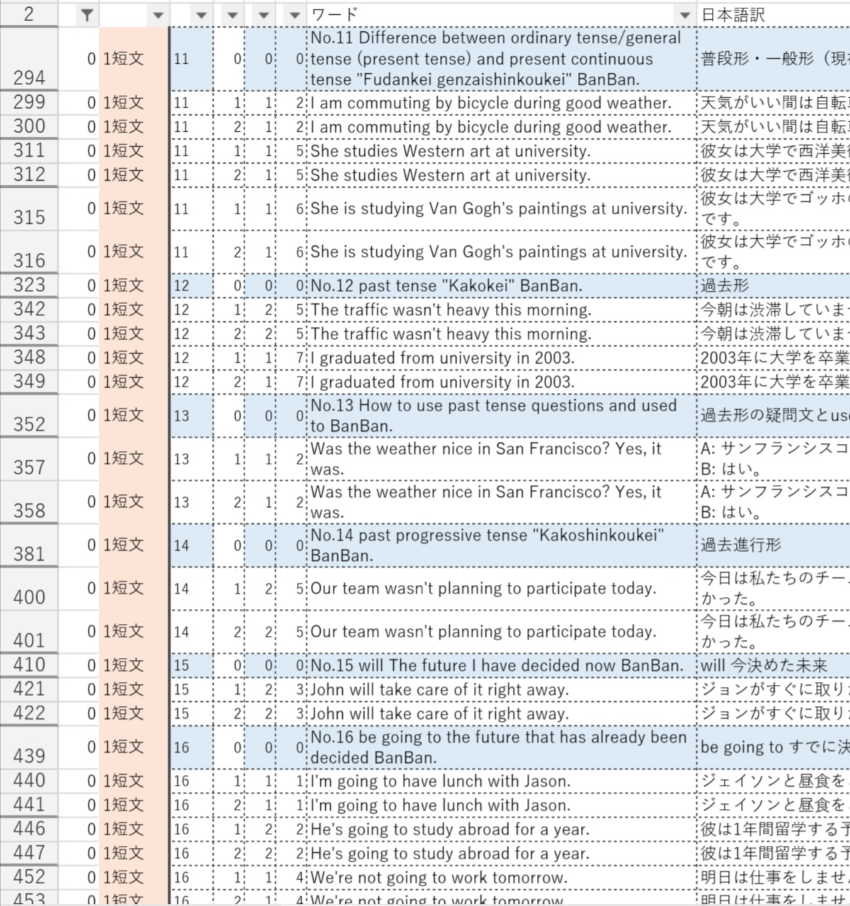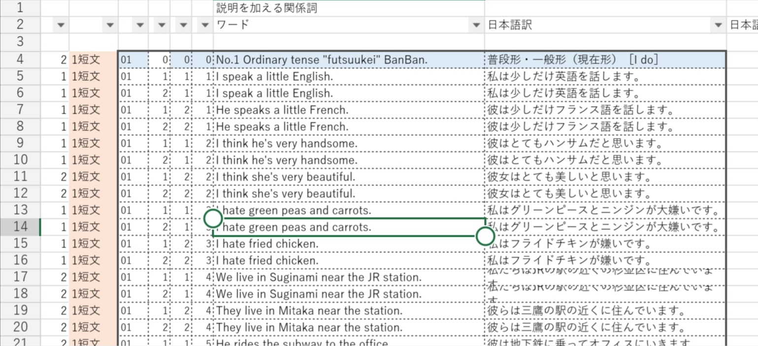 Excelで絞り込まれた英語の文をどうしゃべってもらうか