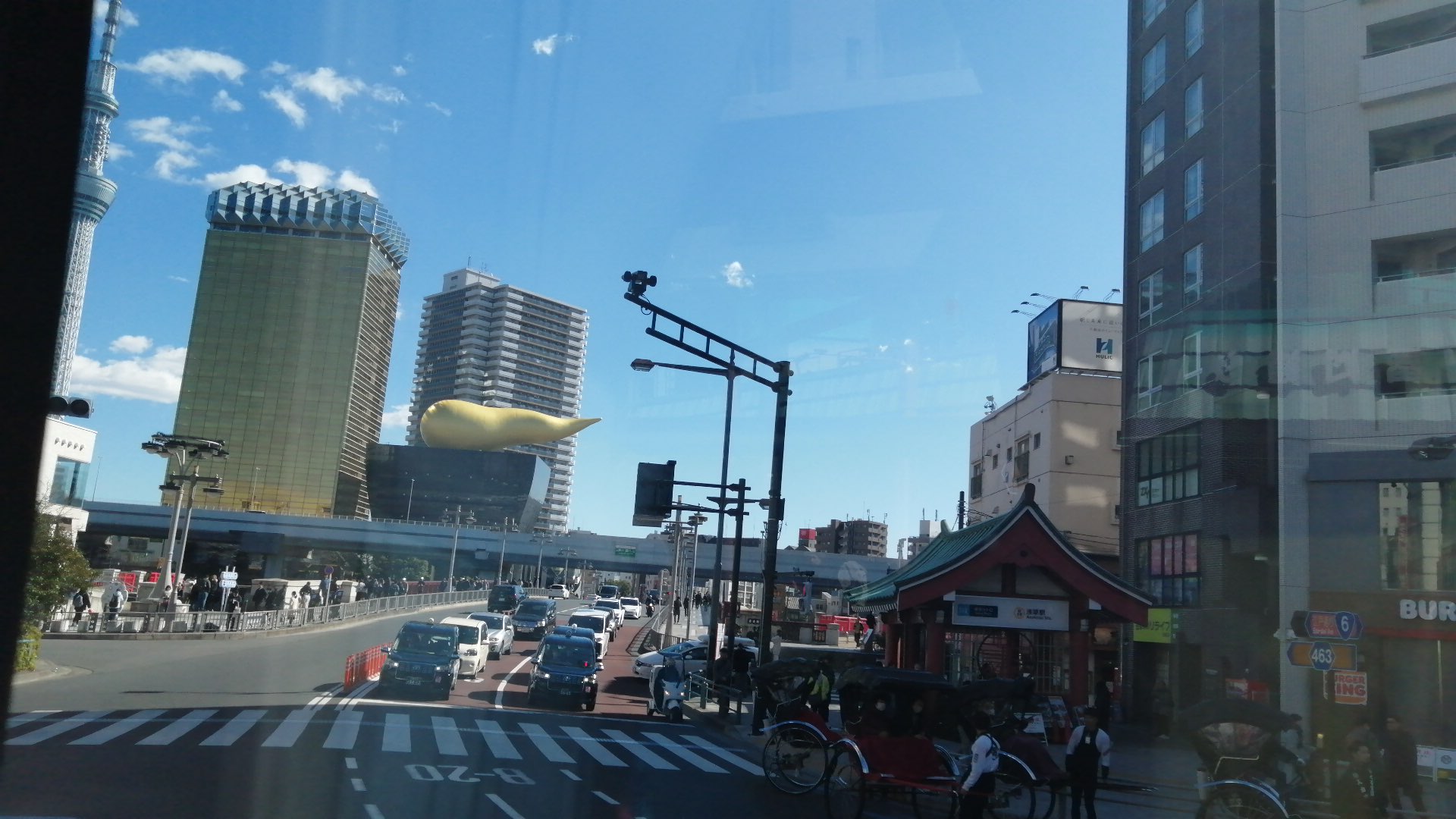 赤い2階建ての屋根のないバスで東京を回る。