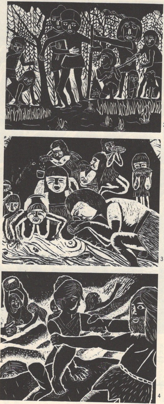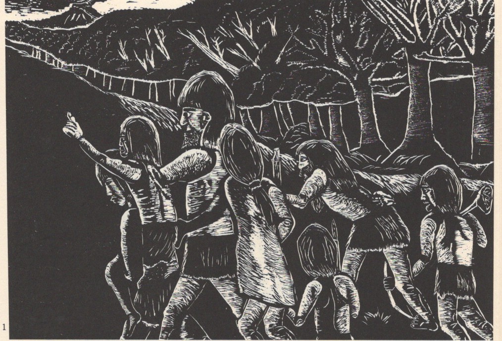 版画に描かれた、生き生きとした縄文人たちは