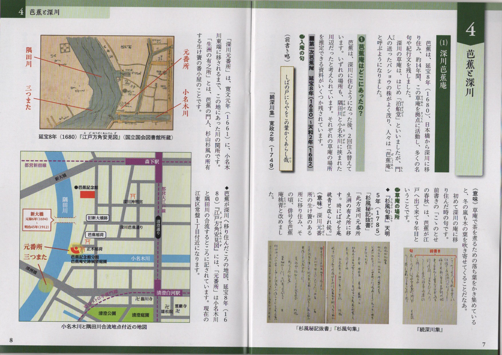 江東区の記念館の場所は、芭蕉が14年間住んだ芭蕉庵の近く