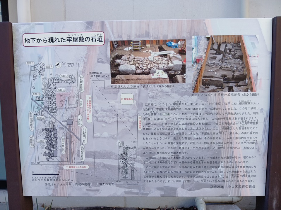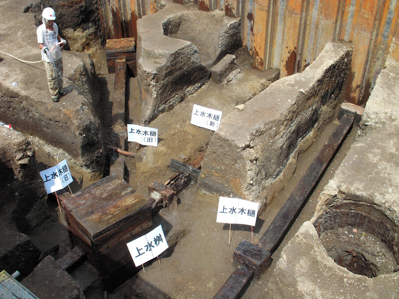牢屋敷の場所の地下から、江戸時代の上水道が発掘された